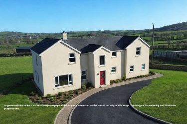 Extending to a generous footprint and positioned on a site of approximately 0.5 acre, the dwelling has been partially built and will require completion by the prospective purchaser. The property provides the ideal canvas to create a bespoke family home, tailored in layout, finish, and design to individual requirements (subject to the necessary approvals).