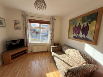 Internally, accommodation comprises welcoming entrance hall, bright and comfortable living room with double glazed doors opening through to a sunroom with direct access to the enclosed rear garden. The ground floor also comprises a generously sized kitchen a convenient ground floor W/C and a dining room — currently arranged as a home office / snug.