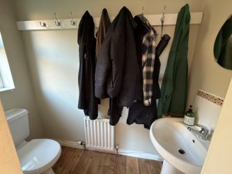 Low flush w/c, pedestal wash hand basin.